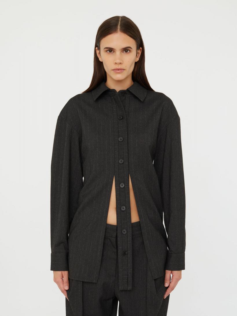 Christopher Esber TOPS | WOMENS Tailored Floating Tab Shirt CHARCOAL STRIPE