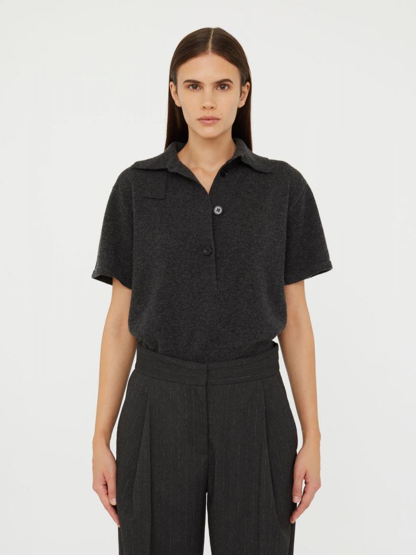 Christopher Esber TOPS | WOMENS Cashmere Knit Polo CHARCOAL
