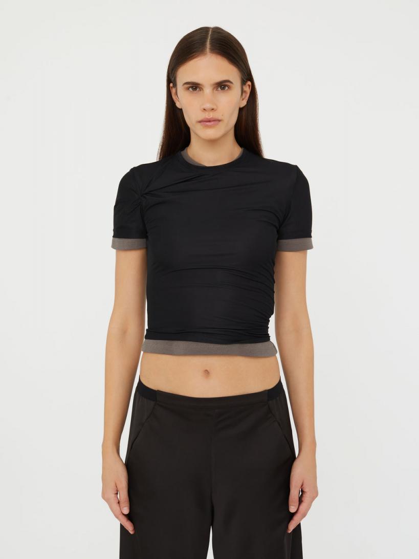 Christopher Esber TOPS | WOMENS Sheer Overlay Loophole Rib Tee BLACK SHADOW GREY