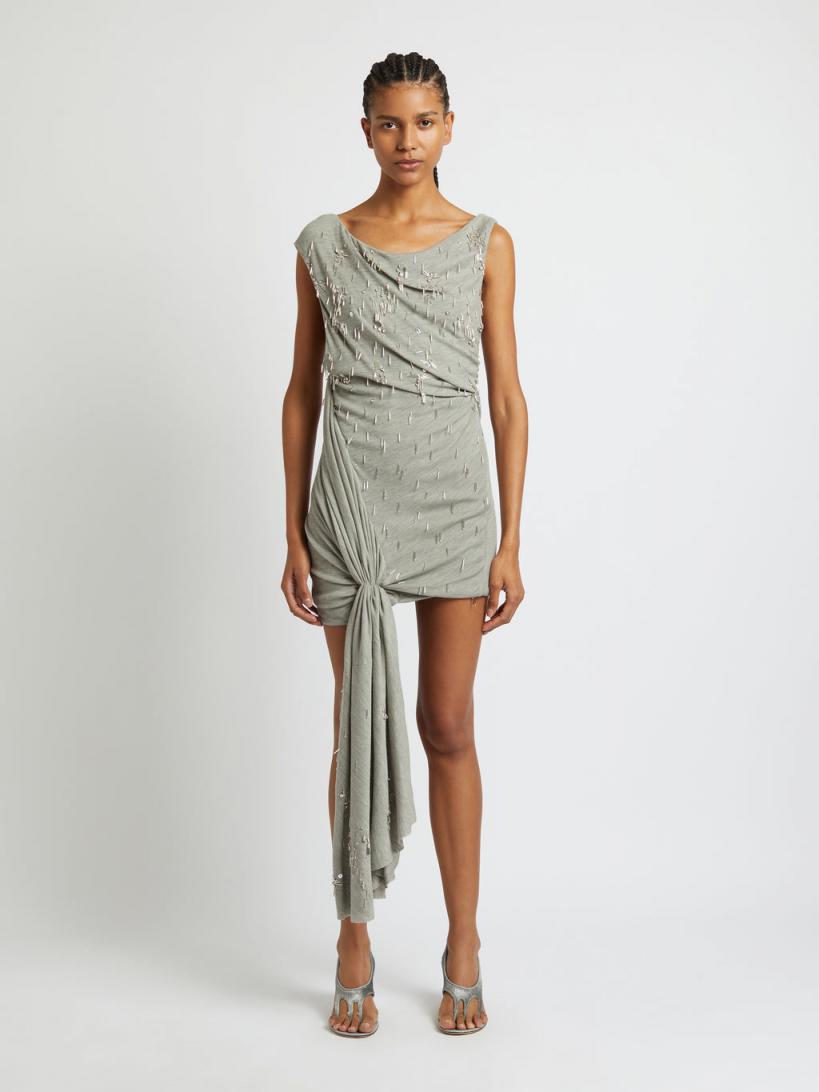 Christopher Esber DRESSES | WOMENS Crystal Cluster Drape Micro Dress GREY MELANGE