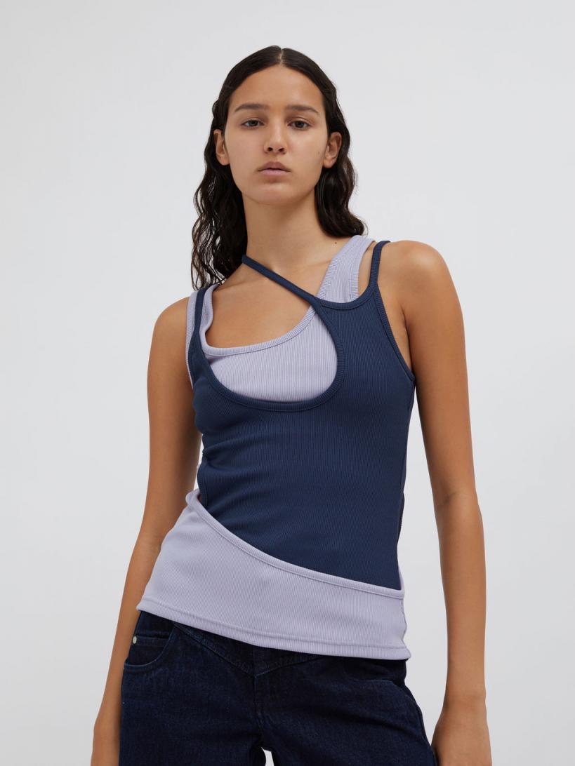 Christopher Esber TOPS | WOMENS Overlapped Tank BLUE GRAPHITE LAVENDER