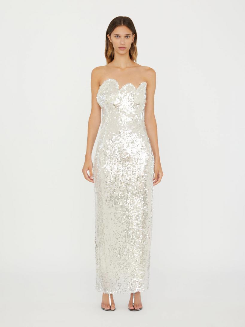 100% Silk Washed silk georgette dress Draped bodice with asymmetric neckline Pull on style Deep V backline Train at back Sheer torso True to size Dry clean only Kate wears a size 8 AusHeight 178cm/5”10”Bust 82cm/32.5”Waist 62cm/24.5”Hips 89cm/35”