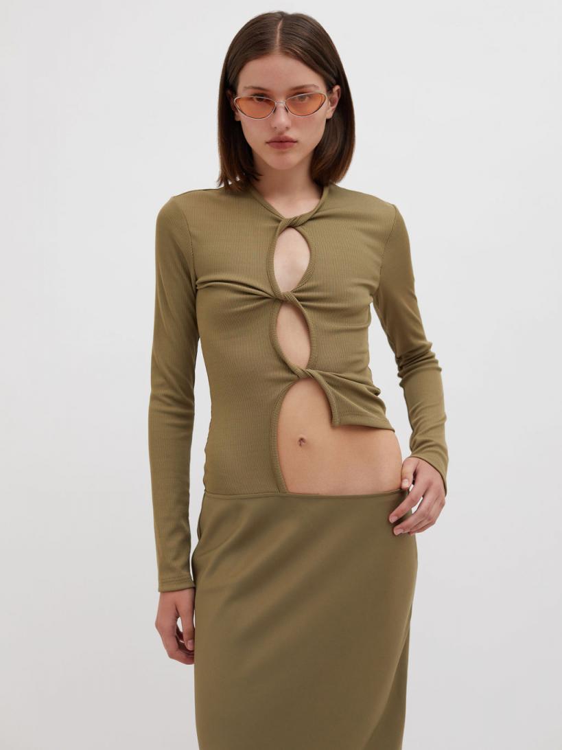 96% Polyester 4% Spandex, 100% Polyester Luxe stretch rib upper Triple twist detailing Signature Christopher Esber cut out detailing True to size Dry clean only Sophia wears a size 8 AUHeight 178cm/5”10”