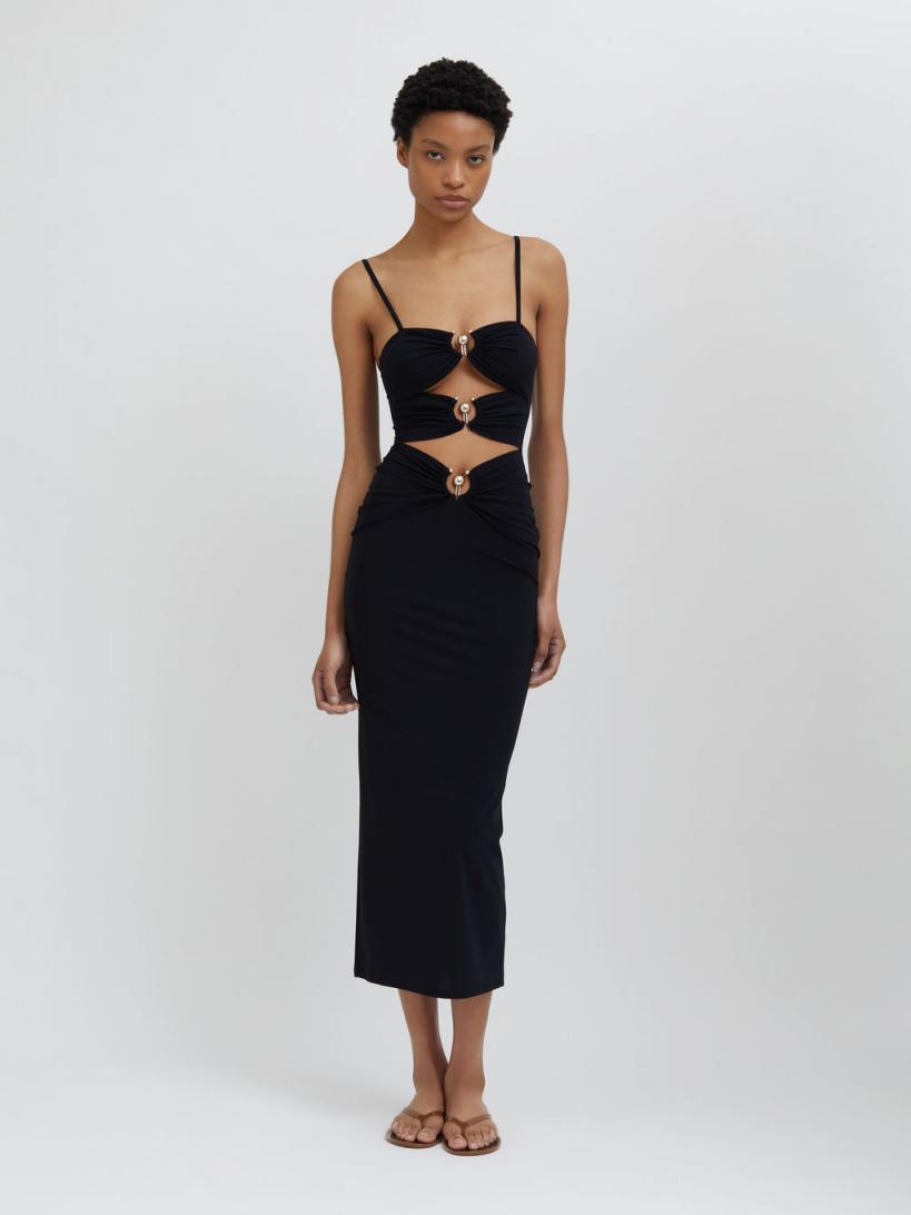 Be the first to review “Christopher Esber DRESSES | WOMENS Pierced Orbit Column Dress BLACK”