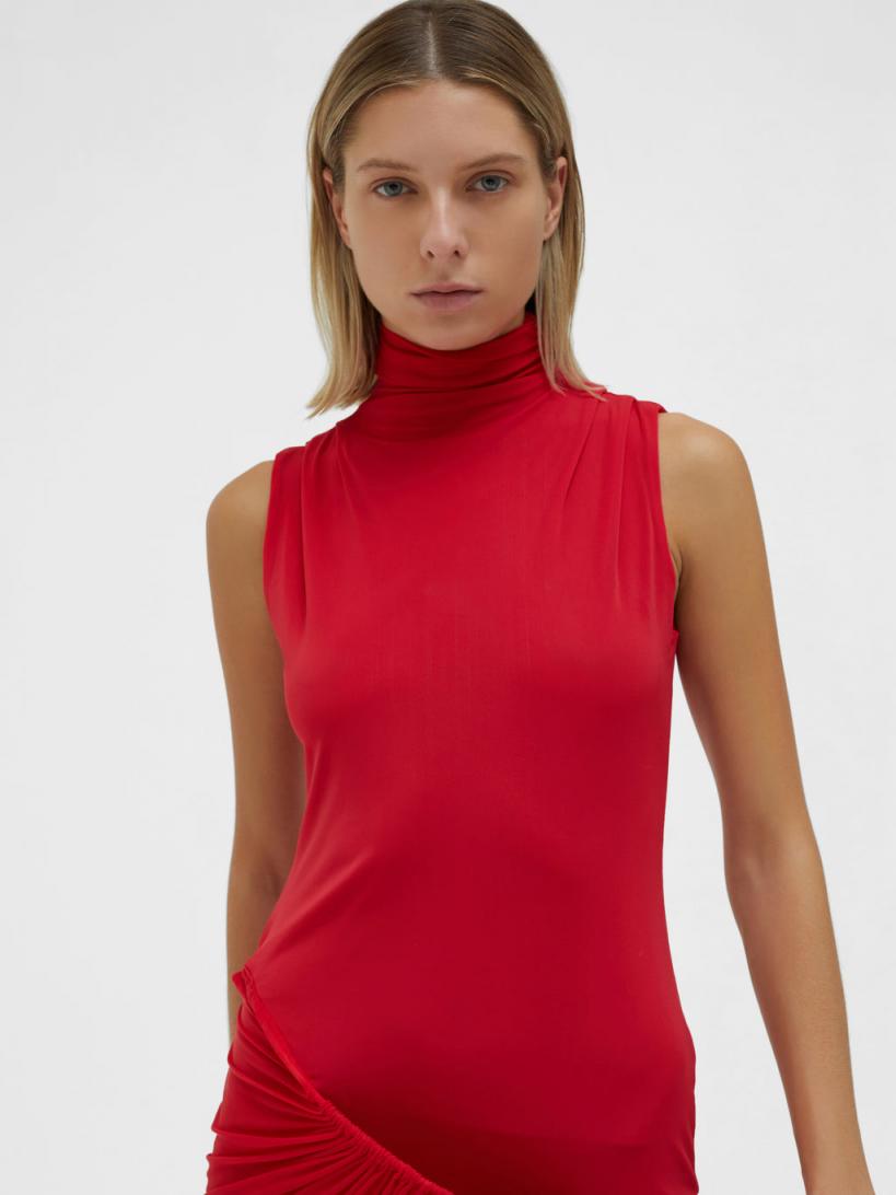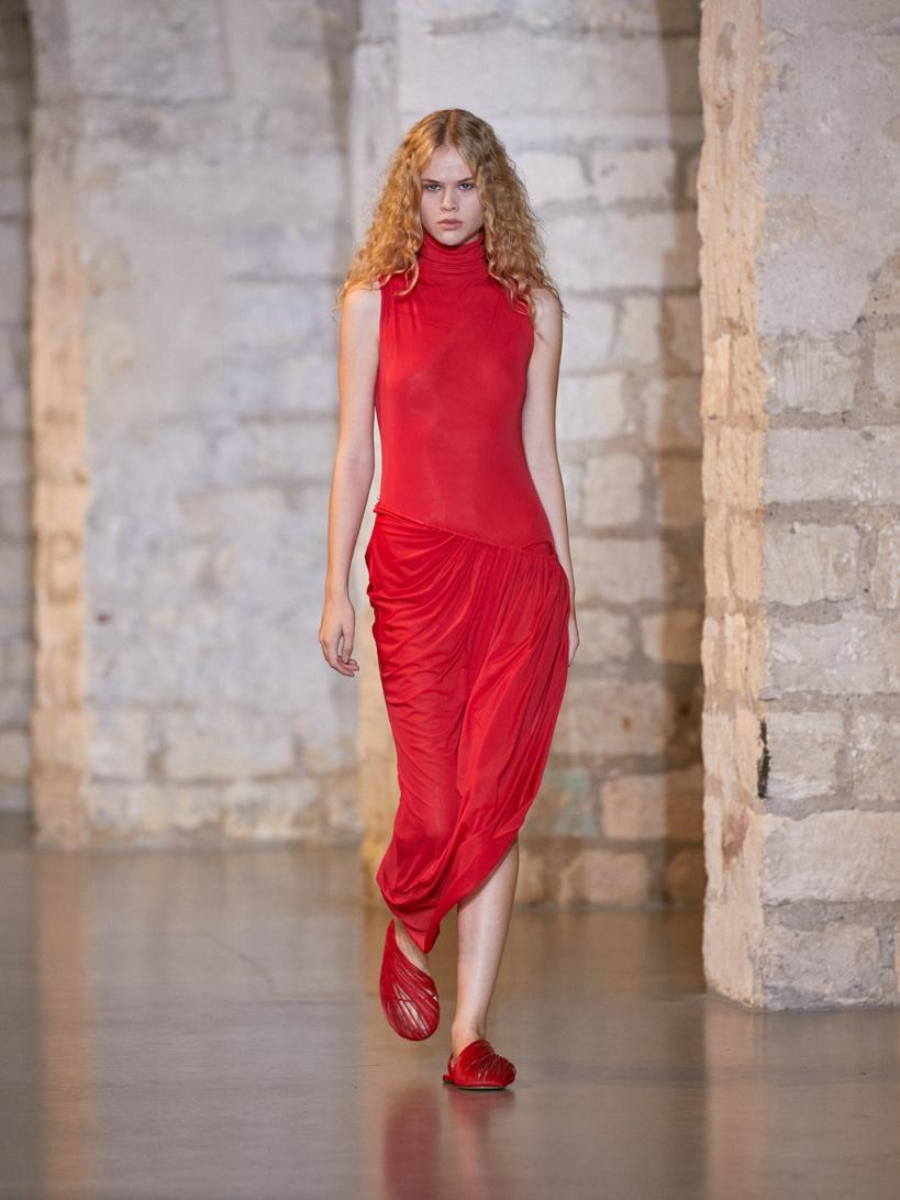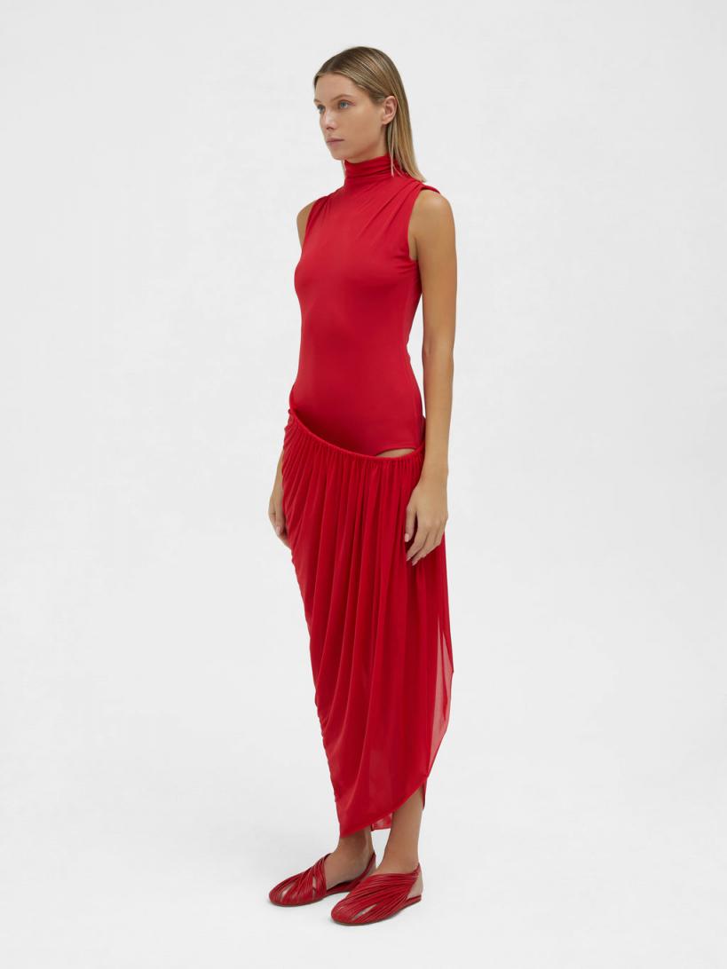 Spring Summer 2024 Runway Look 90% Polyamide, 10% Elastane, 100% Brass Wire suspended skirt Mock neck Body skimming silhouette Gathered detailing Dry clean only Marie wears a size 8 AusHeight 179cm/5”10”Bust 86cm/34”Waist 60cm/23”Hips 87cm/34”