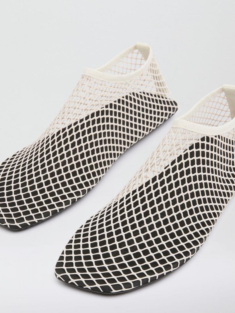 Inviting tension between the city and the sea. Our signature mesh, slip-on ballerina flat is reinvented in a water resistant silhouette Crafted in Italy Mesh Nylon netting Water resistant Sock-like slip on silhouette Elasticated ankle opening for ease of wear Upper: 100% Nylon Sole: 100% Rubber Footwear is IT sizing