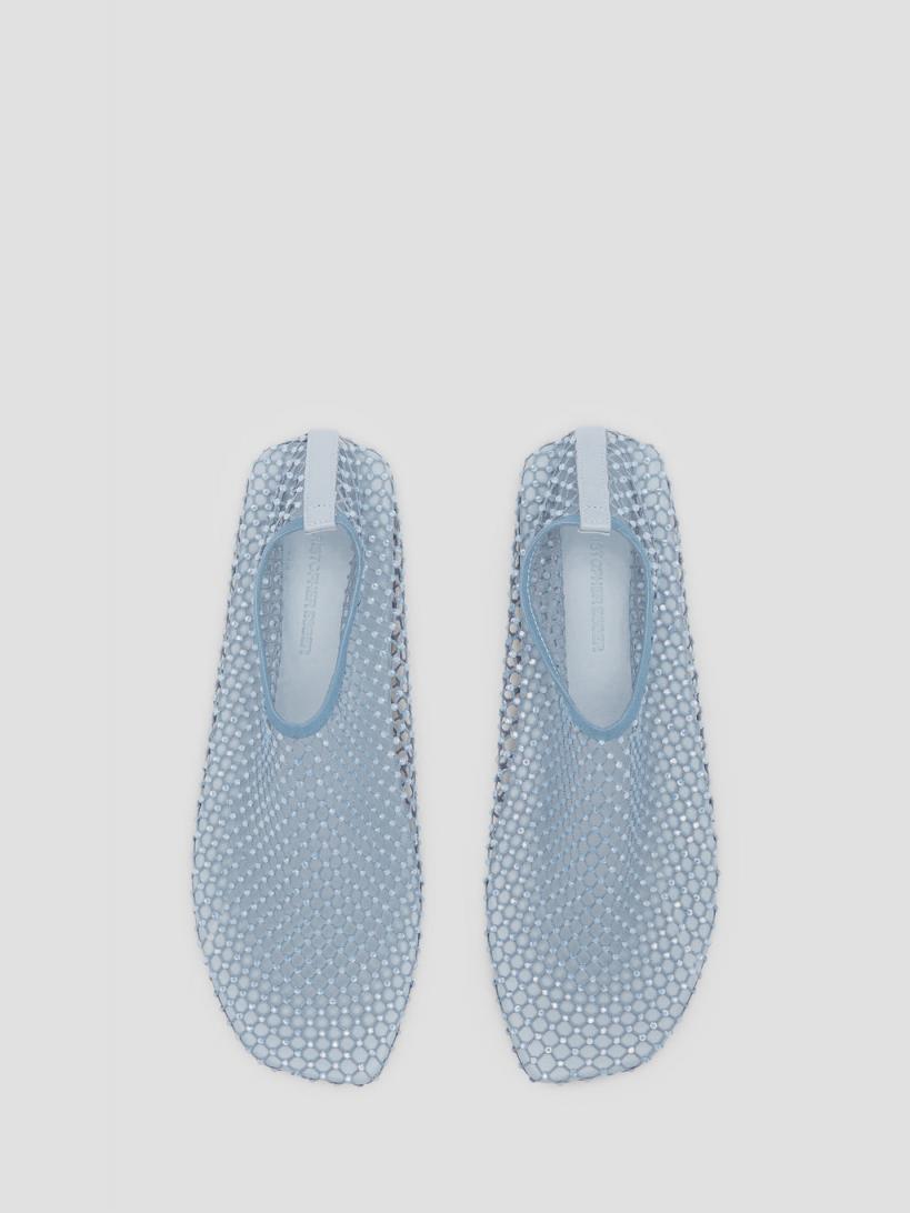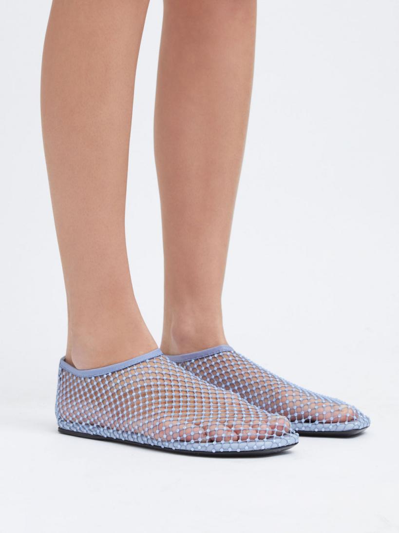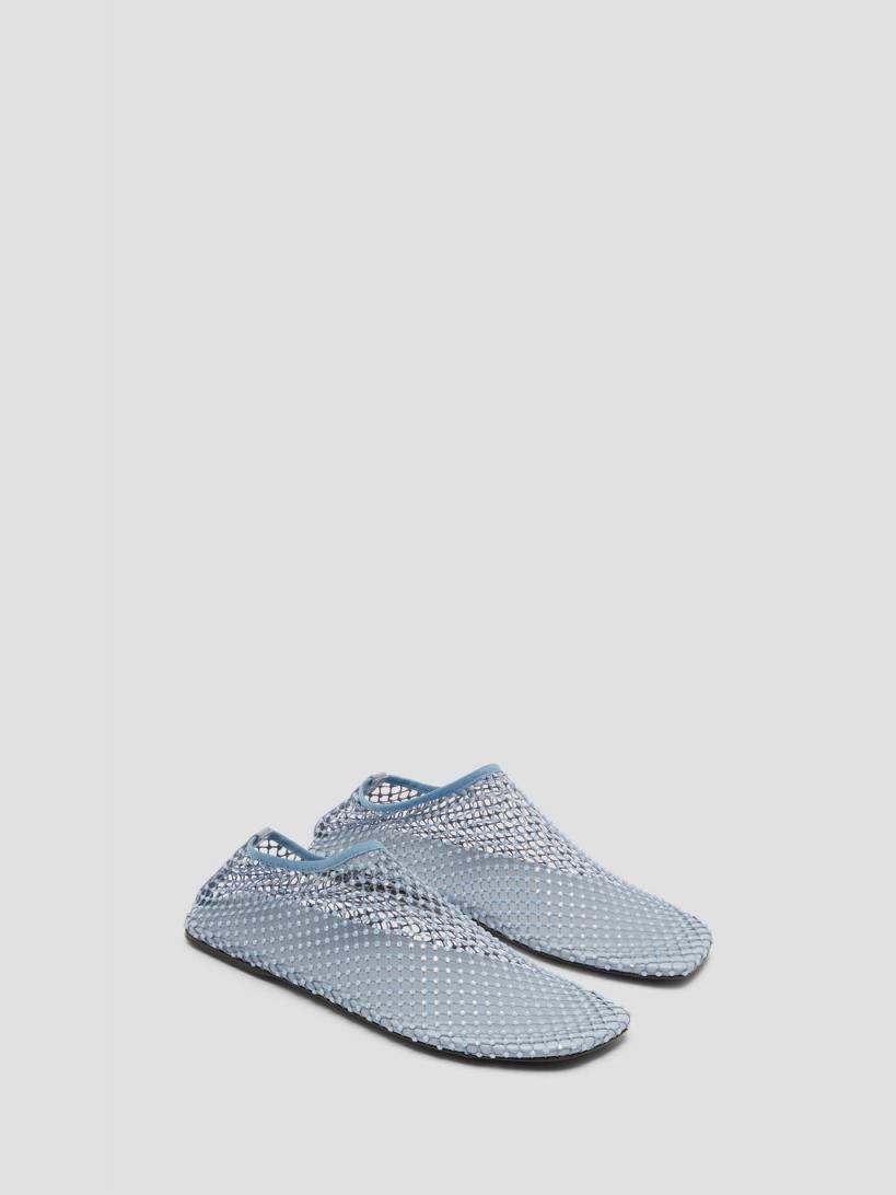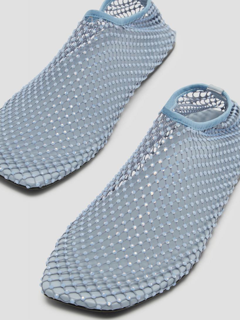 93% Polyester 7% Spandex With Glass Crystal Upper, 100% Leather Sole Crafted in Italy Mesh netting with crystal embellishment Leather sole Slip on