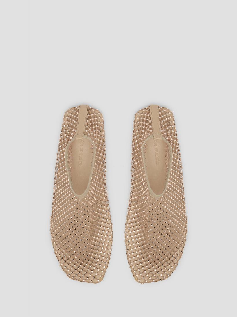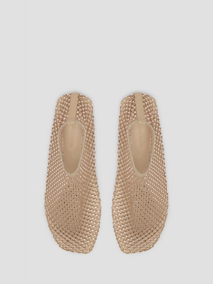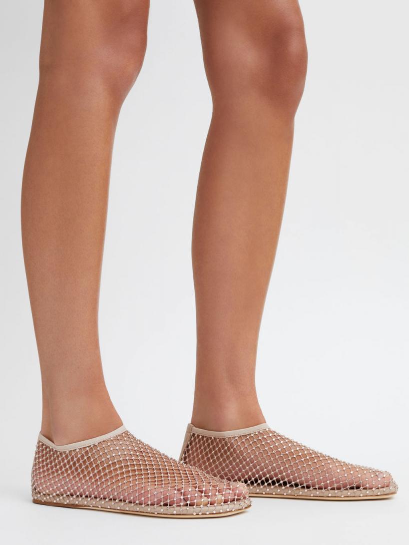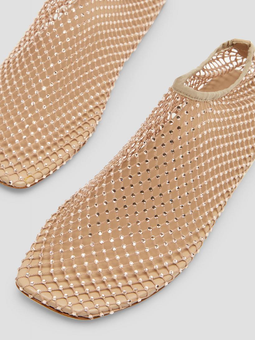 An artisanal mesh, slip-on ballerina flat. Italian craftsmanship is revealed in the precisely hand applied glass crystals. Crafted in Italy Mesh netting with hand applied crystal embellishment Sock-like slip on silhouette Elasticated ankle opening for ease of wear Upper: 93% Polyester 7% Spandex with Glass Crystal Sole: 100% Cow Leather Footwear is in IT sizing