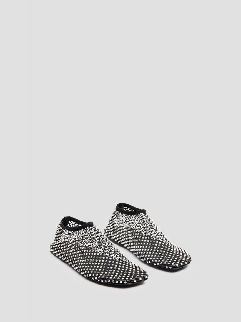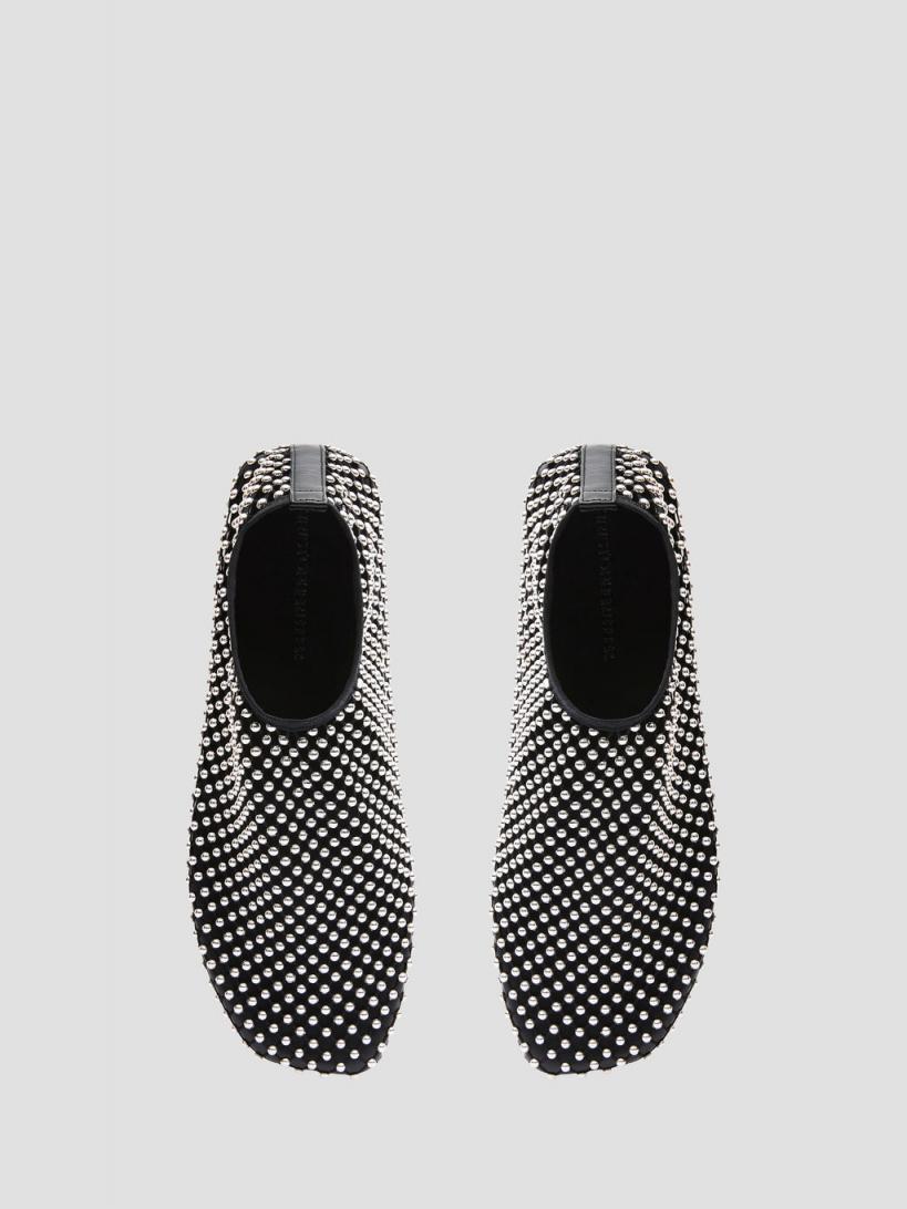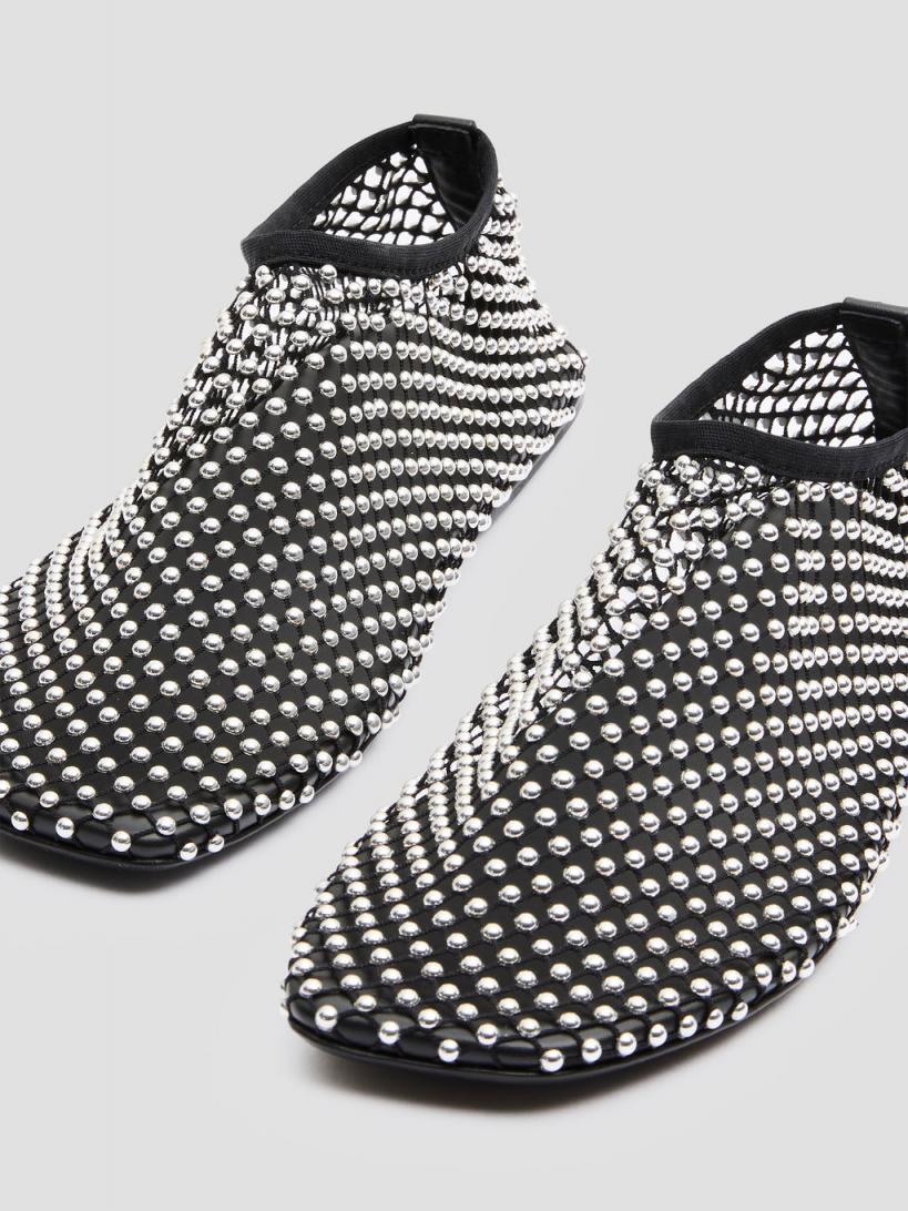 A studded mesh, slip-on ballerina flat. Italian craftsmanship is revealed in the precisely hand applied metallic silver studs. Crafted in Italy Mesh netting with stud embellishment Sock-like slip on silhouette Elasticated ankle opening for ease of wear Upper: 93% Polyester 7% Spandex with Metal stud Sole: 100% Cow Leather Footwear is in IT sizing