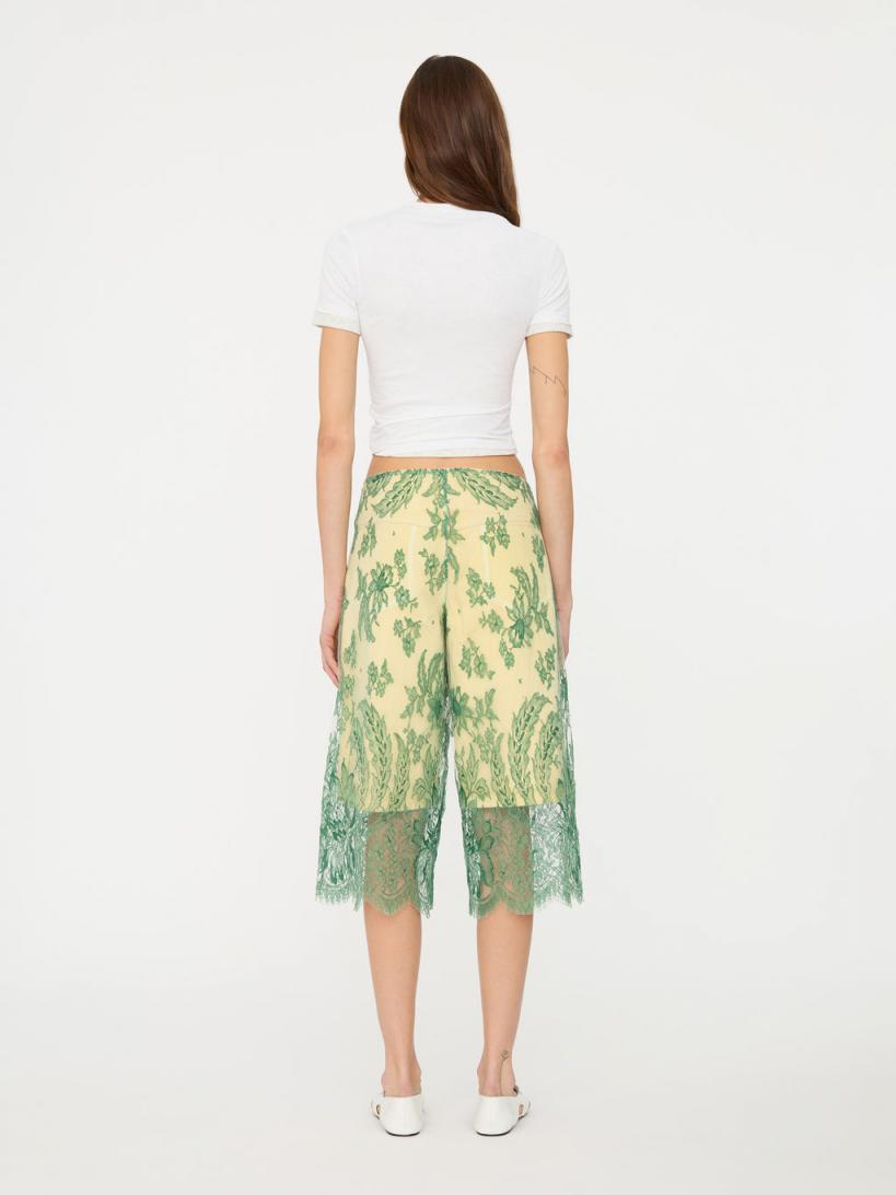 Mixing mundanity with elevated codes, this denim short is encased in a delicate layer of evergreen lace. Cut wide for a modern fit. Minimal waistband Layered lace outer Denim base Hook and bar closure Sits below the knee Lace: 75% Cotton 25% Polyamide Denim: 100% Cotton Amélie is 180cm/5’11” and wears size AU 8 (US 4)AU sizing