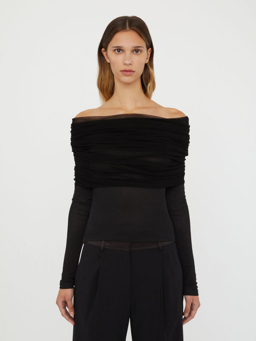 Christopher Esber TOPS | WOMENS Sonora Veiled Long Sleeve Top BLACK
